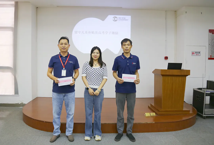 在关注留守儿童的同时,创汇实业也高度重视职工子女的教育发展。今年,职工家庭中涌现出两位优秀的高考学子,他们凭借自身的努力与拼搏,分别考上了广州医科大学(双一流大学)和华中农业大学(211大学),用优异的成绩为家庭争光,也为公司职工子女树立了良好榜样。在热烈的掌声中,工委会主席郭斯镅为这2户职工家庭送上“高考学子激励奖金”,向考生表示热烈祝贺。