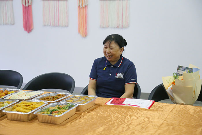 郑超琼女士脸上洋溢着幸福的笑容,眼中却难掩不舍之情,与大家分享自己工作多年的感悟,以及表达对公司、同事和领导的感谢之情。
