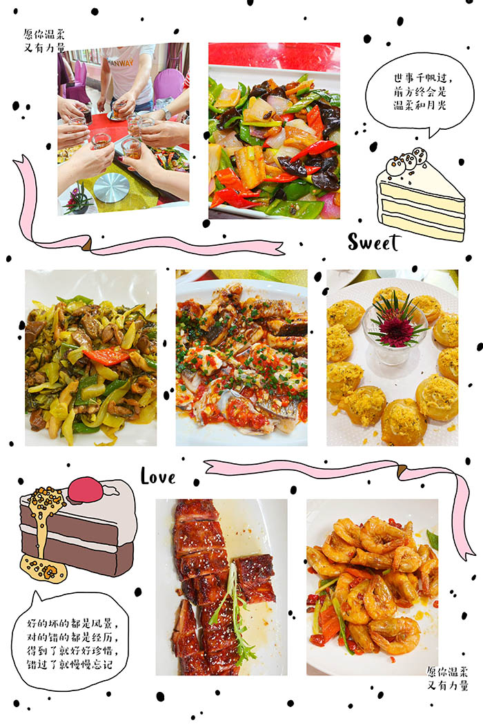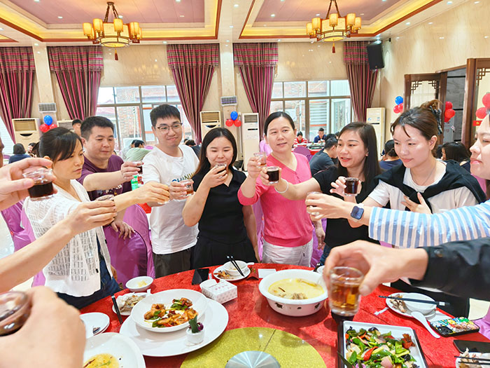 切蛋糕仪式结束后,丰盛的围餐正式上桌,大家举杯同庆,共享美食。